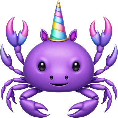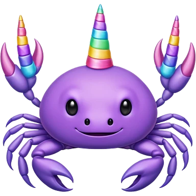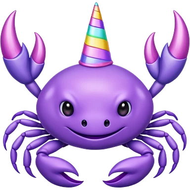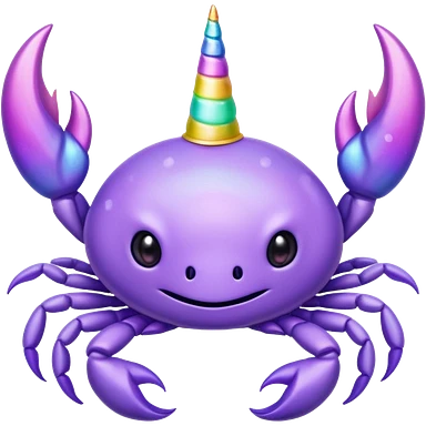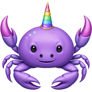 a cute purple crab with no face and a unicorn horn emoji