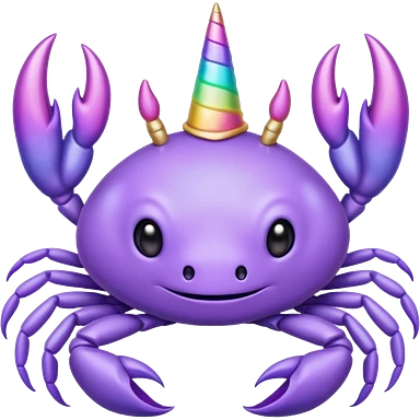 a cute purple crab with a unicorn horn. the crab shouldn't have a face emoji