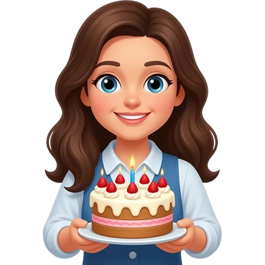 a cake roll with yellow pink and purple star on both side of cheeks do there 6 star in a then it has white frosted cream on the top of the brown cake roll and he’s kiss a strawberry with long green leafs emoji