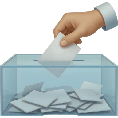 Close-up of a hand placing a paper ballot into a glass box, clean minimalist lines, vintage aesthetic, soft lighting, symbolic of democratic choice and civic duty. emoji
