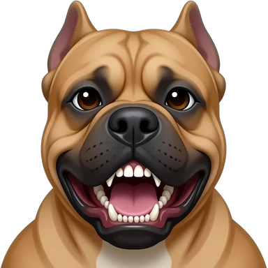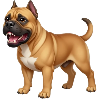 A cane Corso fawn color clipped ears, chopped tail , as Roman war dog standing in front of the Oakland Raiders stadium with 2 pac with his eye ironic red bandanna tide on his head, the hip-hop, rapper, iconic, dreadlocks, and bucket hatstanding in the background @gotflags4U in graffiti in the sky emoji | AI Emoji Generator