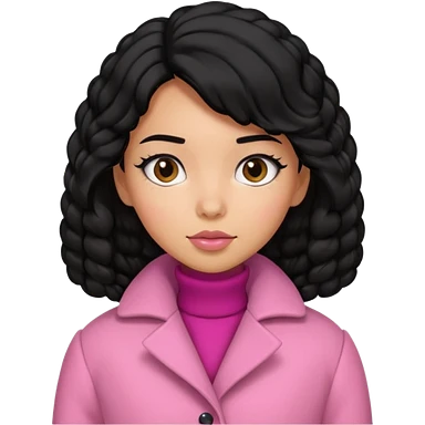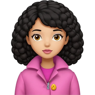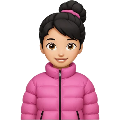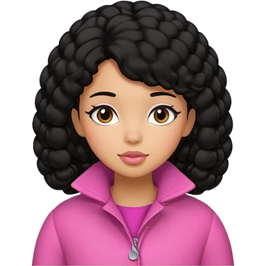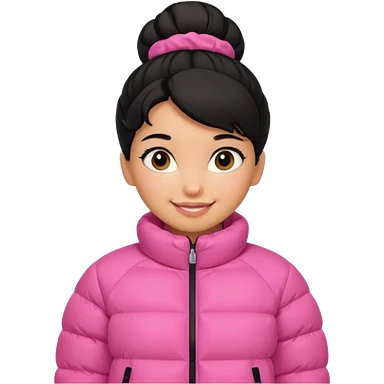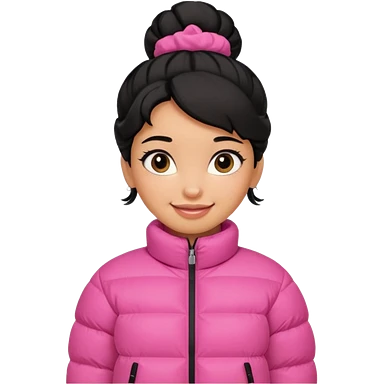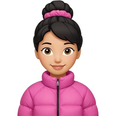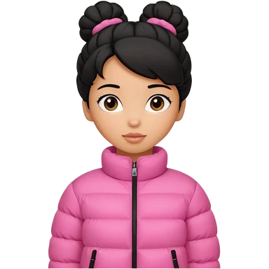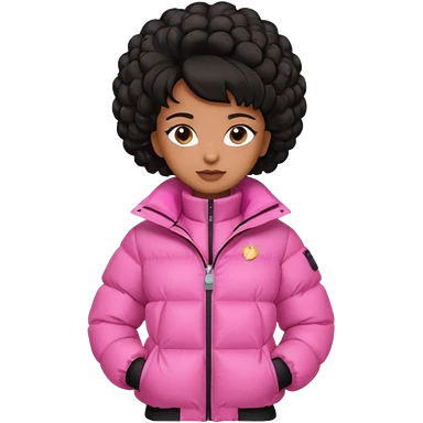 A caramel skinned girl that’s has puffy black hair with her hair up skinny and wears a pink puffer coatb emoji | AI Emoji Generator