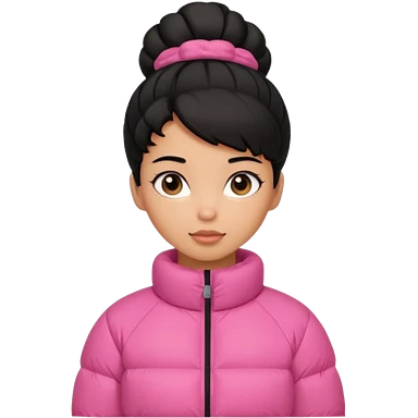 A caramel skinned girl that’s has puffy black hair with her hair up skinny and wears a pink puffer coatb emoji