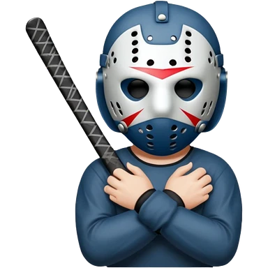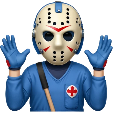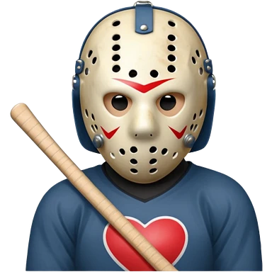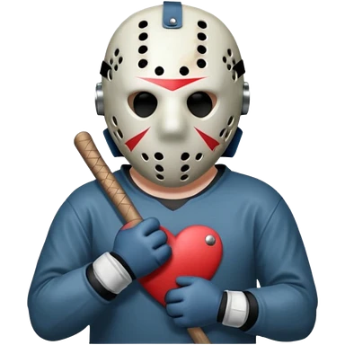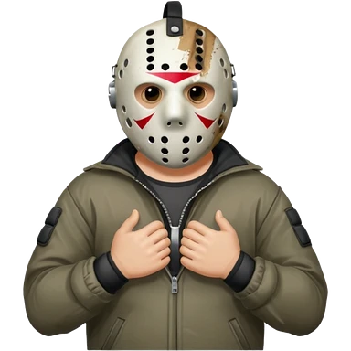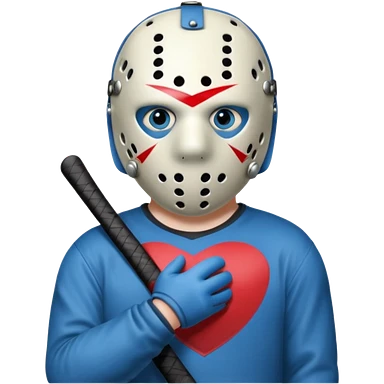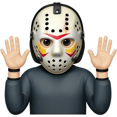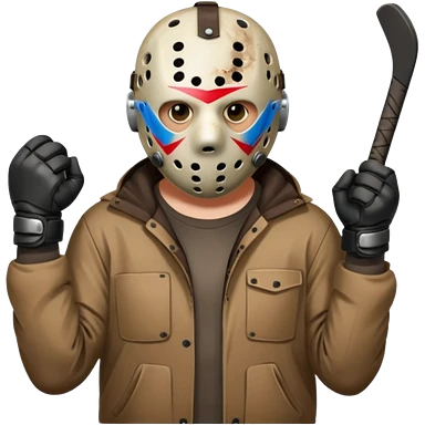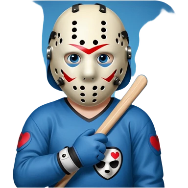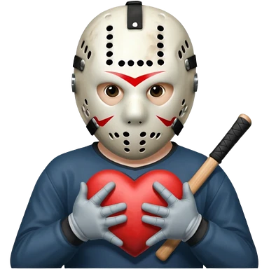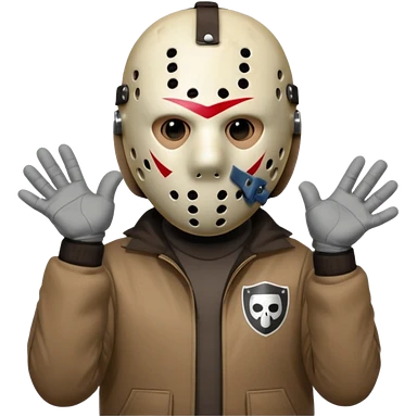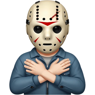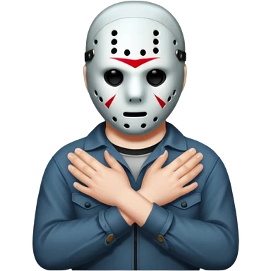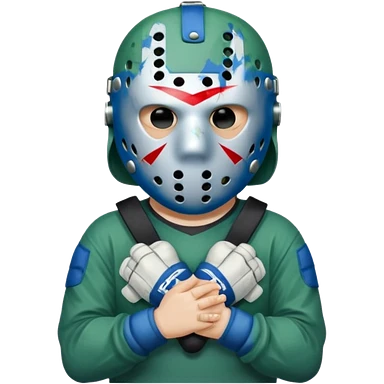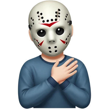 a cartoon image of Jason Voorhees, looking cute, with his hands together in front of him emoji | AI Emoji Generator