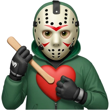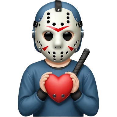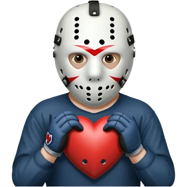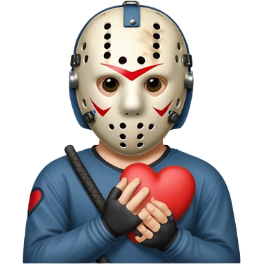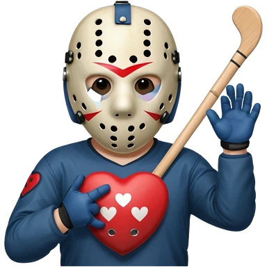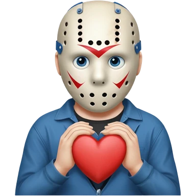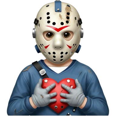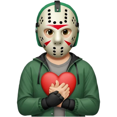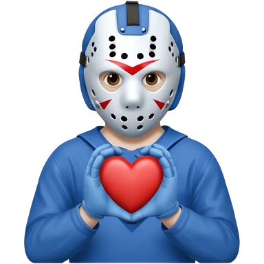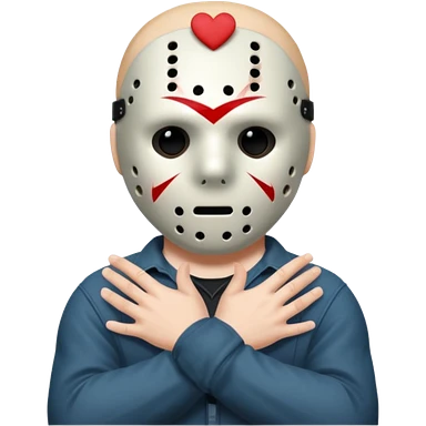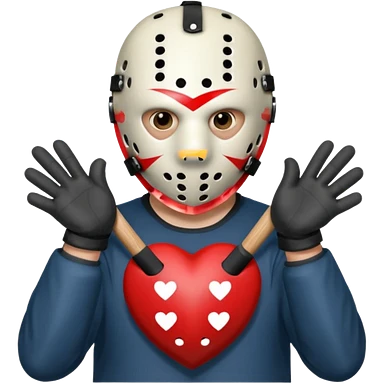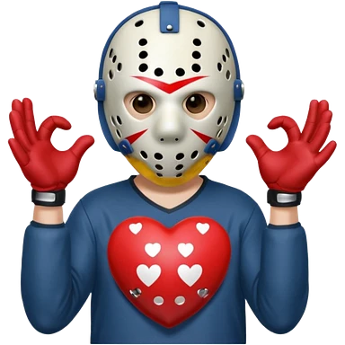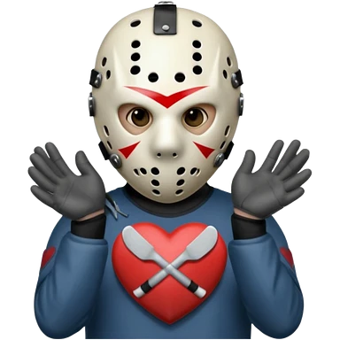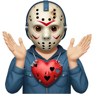 Jason Voorhees, looking cute, heart-shaped hands emoji