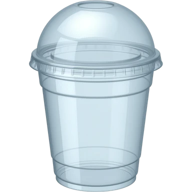 transparent plastic cup large with a dome lid (clear rounded dome top with a circular hole), similar to a smoothie cup. emoji