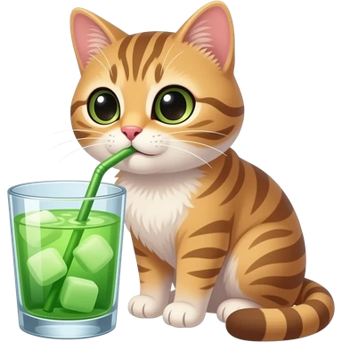a cat sipping on a refreshing green drink in a rocks glass emoji