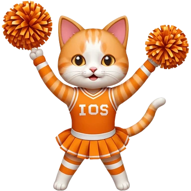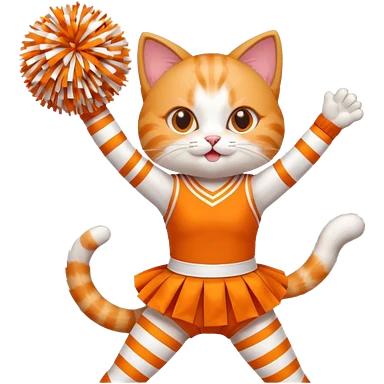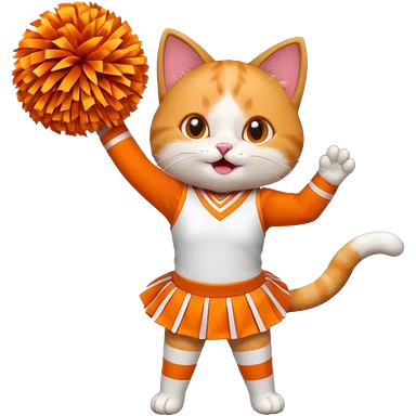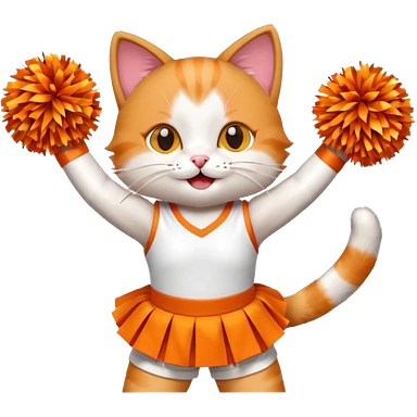 A cat in a tiny cheer outfit shaking pom-poms with bright enthusiasm. emoji