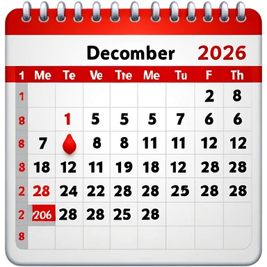 create a calendar for december 2026 , monday comes first day of the week and highlight with red 15-28 december emoji