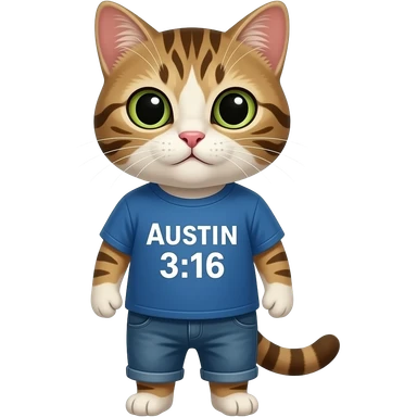 a cat wearing a shirt that says "austin 3:16" emoji
