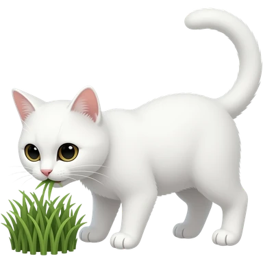 A white cat eats grass emoji