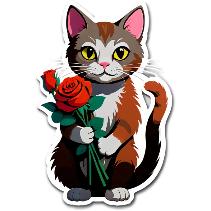 A cat holding a bunch of roses image | AI Emoji Generator