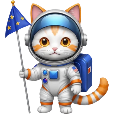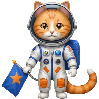 a cat in space suit, holding blue rectangle flag emoji | AI Emoji Generator