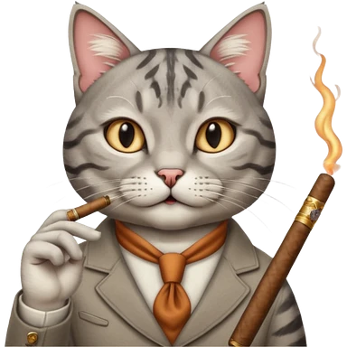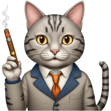 A cat in the black suite with a cigar in a paw with the other paw in the "classic" hand gesture with a "classic" face. emoji