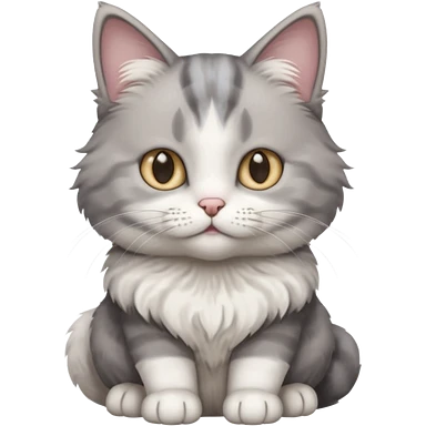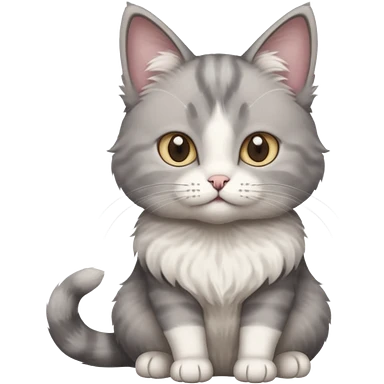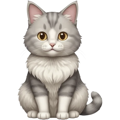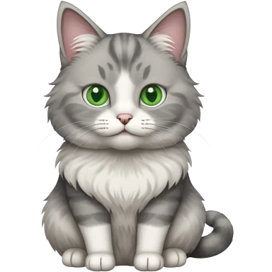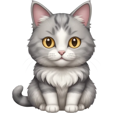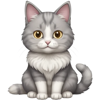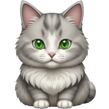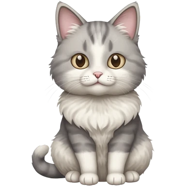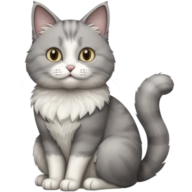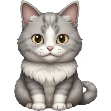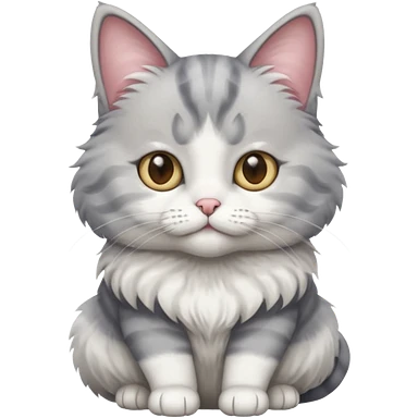 a realistic looking very fluffy grey and white cat sitting up straight emoji