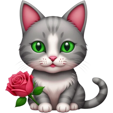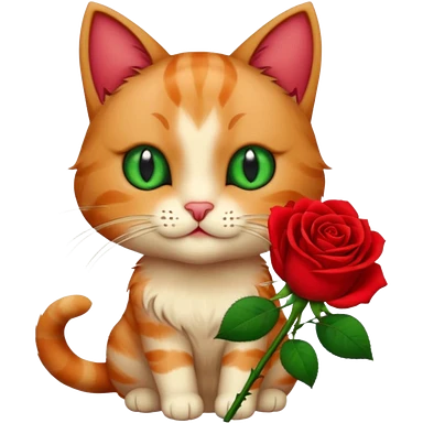 A cat holding a rose emoji