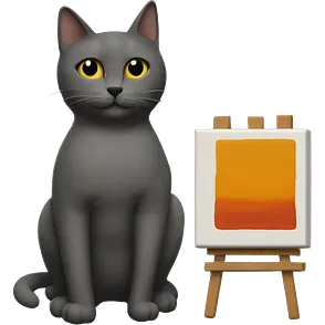 happy cat painting with a paintbrush, joyful face, emoji style emoji