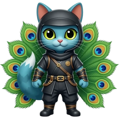 A kitsune japanese cat with indian peacock colours, styled like an IT techninja emoji
