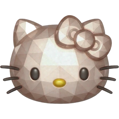 A faceted rose gold 3D Hello Kitty emoji, geometric low-poly style, metallic and reflective, white background emoji