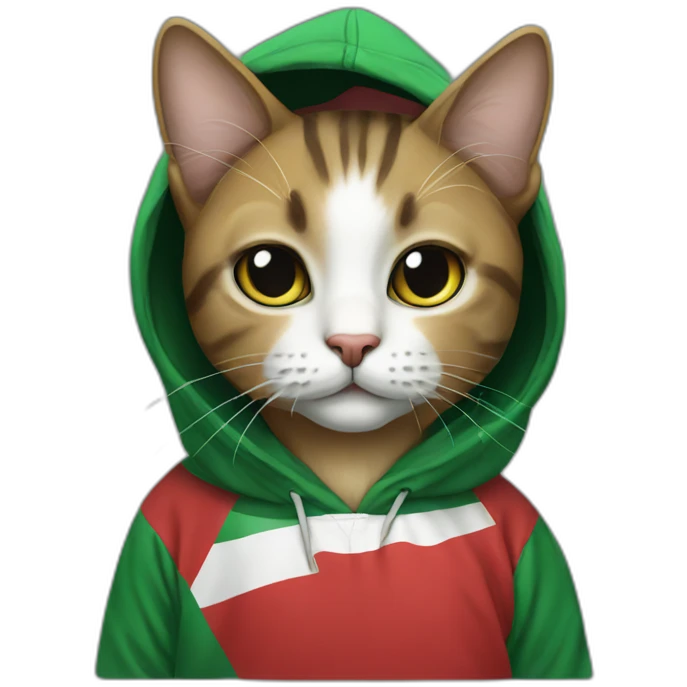 a cat wearing Palestin's flag hoodie emoji | AI Emoji Generator
