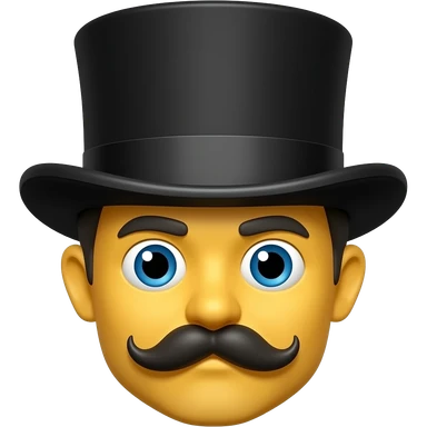 A head only with a mustach and a tophat with eyes and yellow skin cartoon like emoji