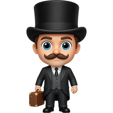 A head only with a mustach and a tophat holding a suitcase emoji
