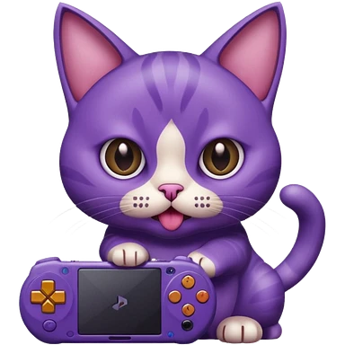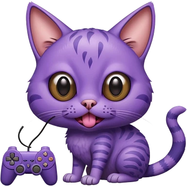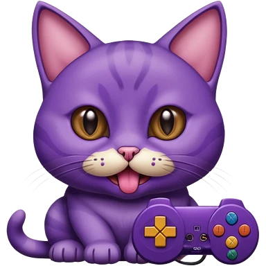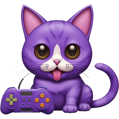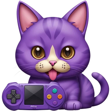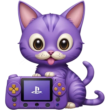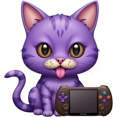 purple cat with huge eyes smelly lines and their massive brown tongue out also a playstation next to it emoji