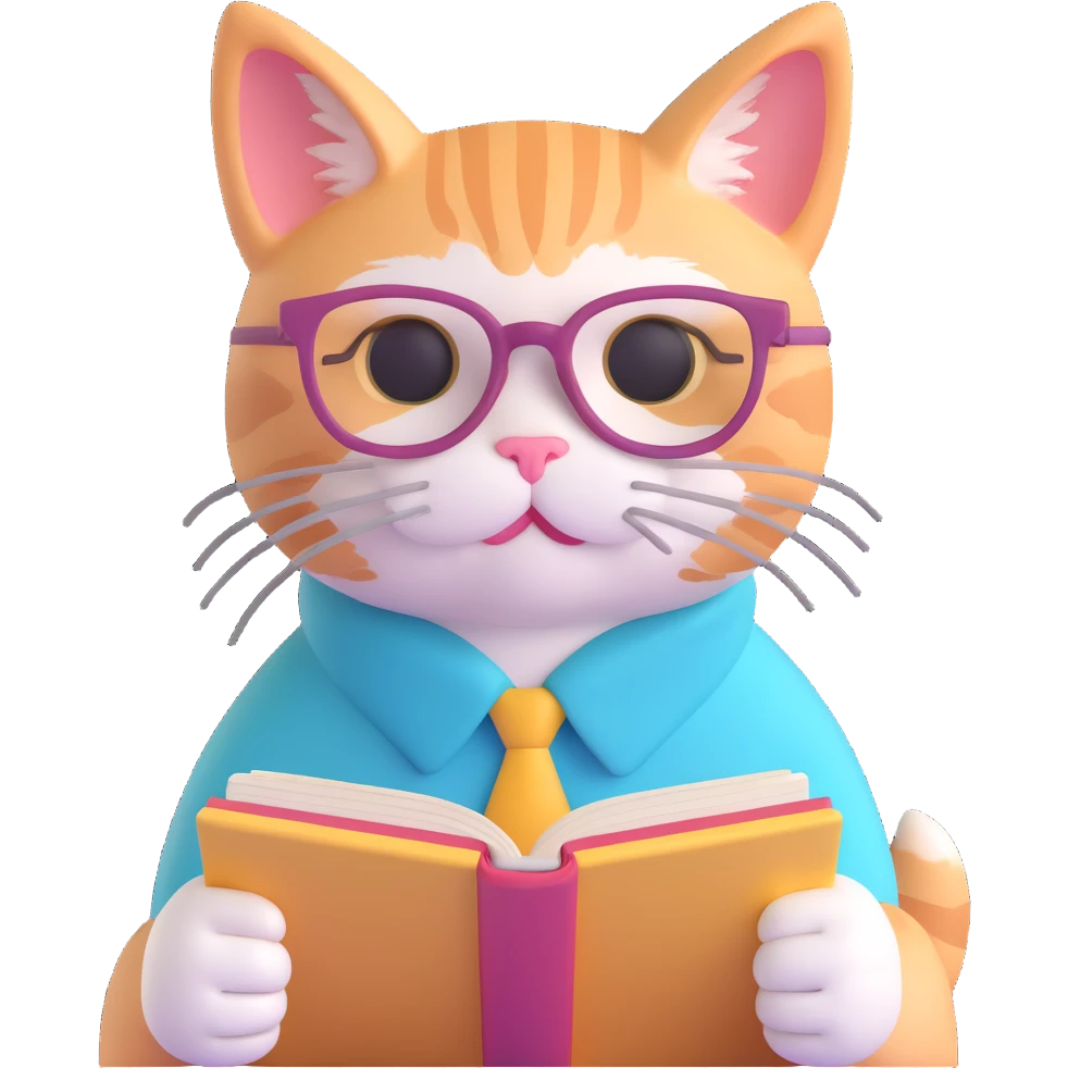 A cat with glasses reading a book, pastel colors, soft lighting, cozy atmosphere emoji | AI Emoji Generator