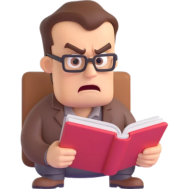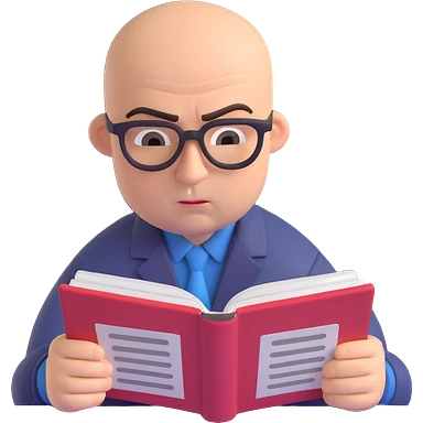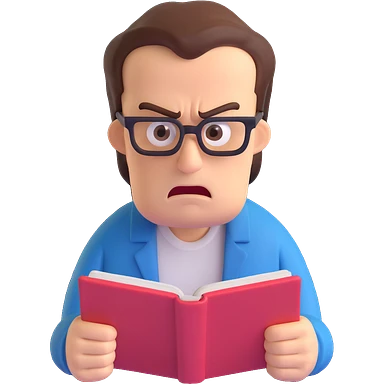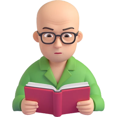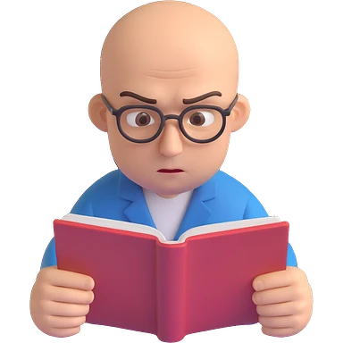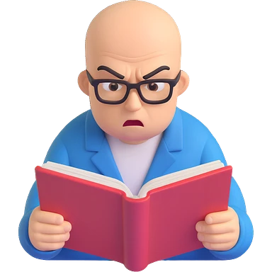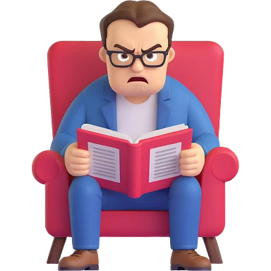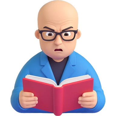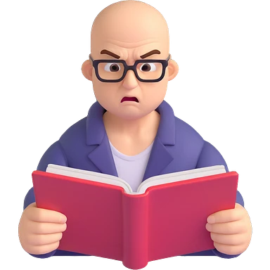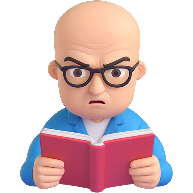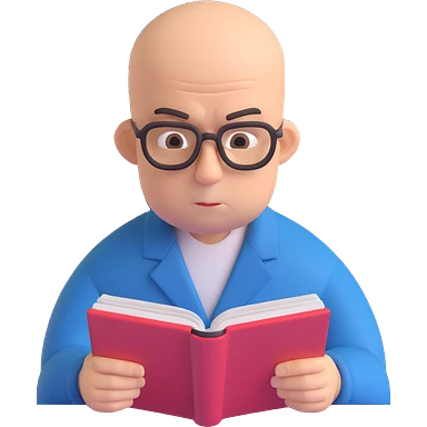 3D smiley emoji, round shape, student reading in library, blue color, calm face emoji