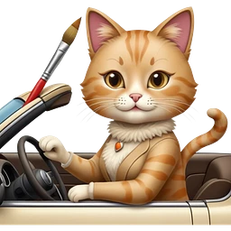A cat with high heels and can drive a car and likes to do art emoji | AI Emoji Generator