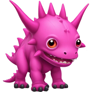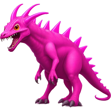 A giant pink kaiju with a long neck, 2 bright pink tusks, horns and 10 spines. He has also 4 full dark pink eyes, dark pink claws and he got 2 spines on its tail. emoji