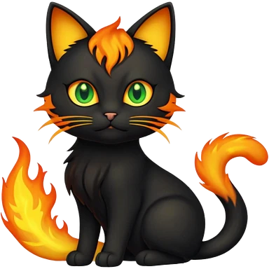 A white cat with green eyes and a black tail and two black marks on the top of her head and a black mark of the top of her neck emoji