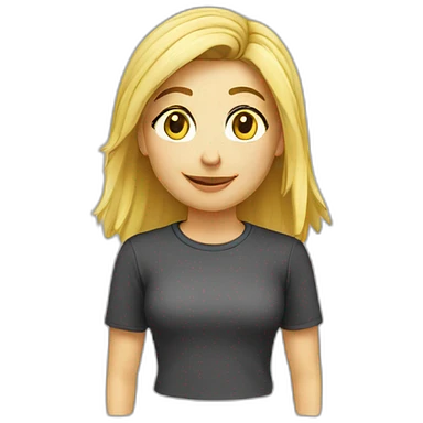 a caucasian brunette female, wearing a purple t-shirt and glasses, making the military salute gesture with one hand on her forehead and the other hand on her waist emoji | AI Emoji Generator