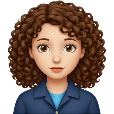 White girl with medium length brown hair, curtain bangs, and brown eyes emoji