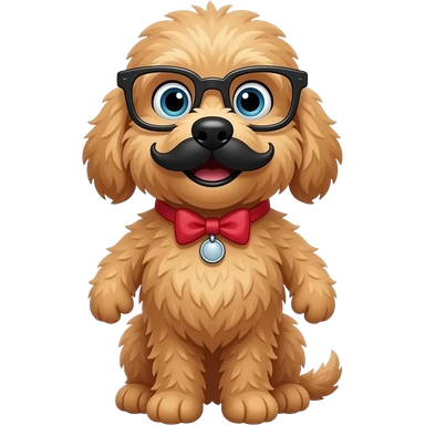 A cavoodle that looks a bit like a muppetwith funny glasses and a moustache emoji