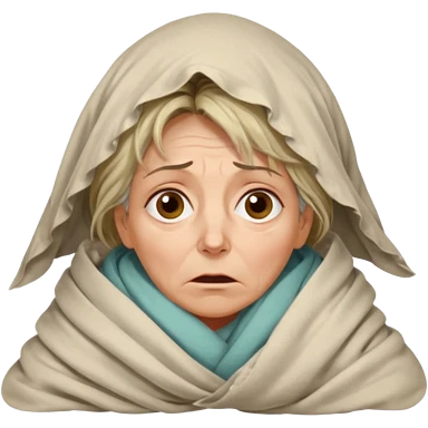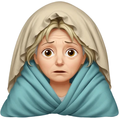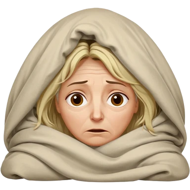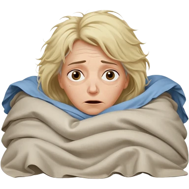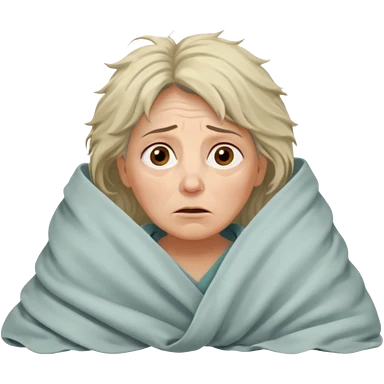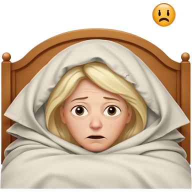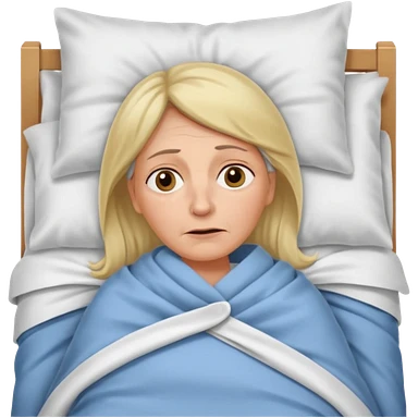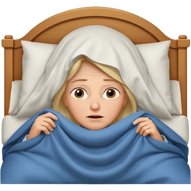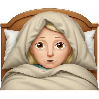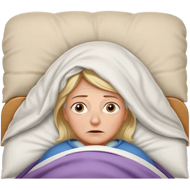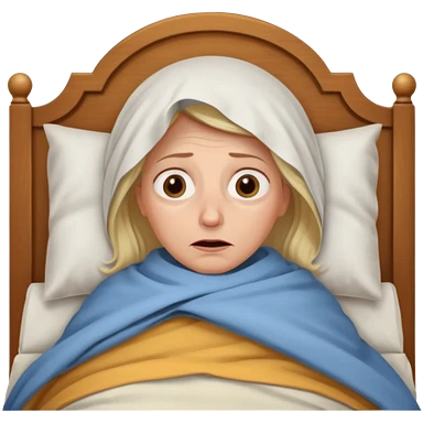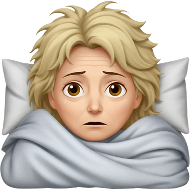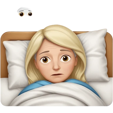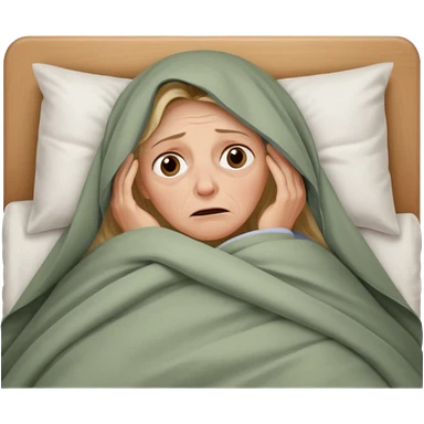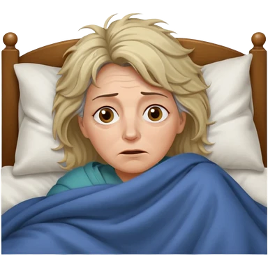 A 55-year-old woman lying in bed, unable to sleep. She looks exhausted and desperate, with visible dark circles under her eyes, tired facial expression. She is under the blankets, staring at the ceiling. emoji