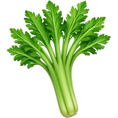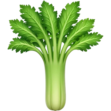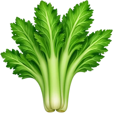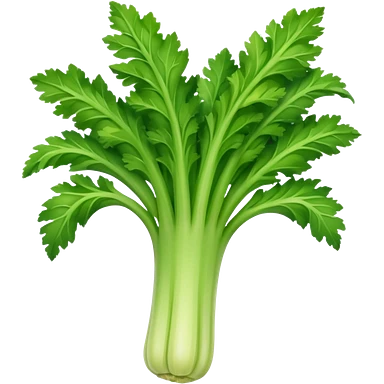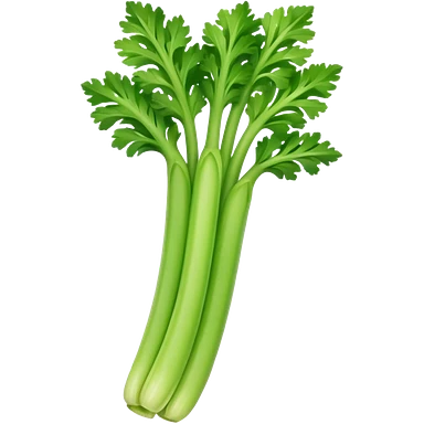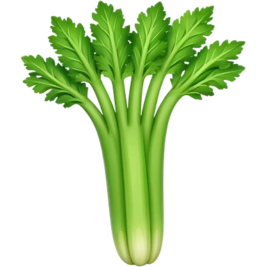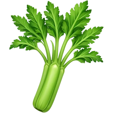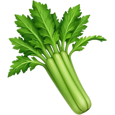 A fresh celery stalk, green and crisp, with its long, fibrous stems and leafy tops. It’s often used in cooking or as a crunchy snack emoji