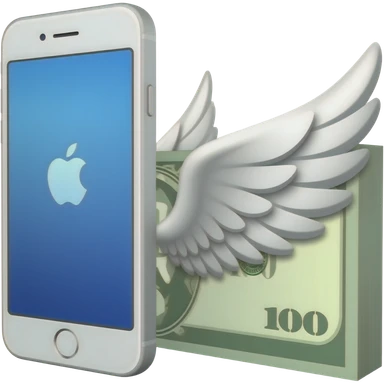 A white iPhone, with a winged banknote next to it emoji