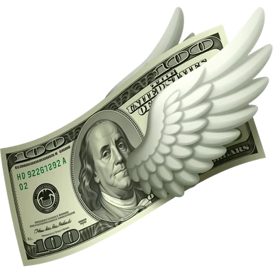 There is a banknote with wings on it emoji