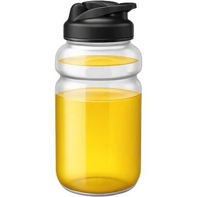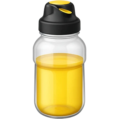 a clear shaker bottle with black cap and a yellow colored liquid inside emoji