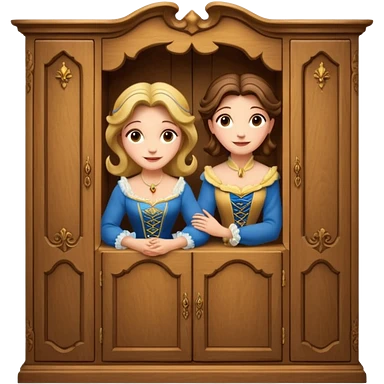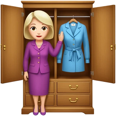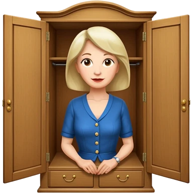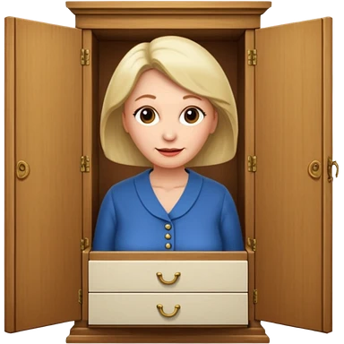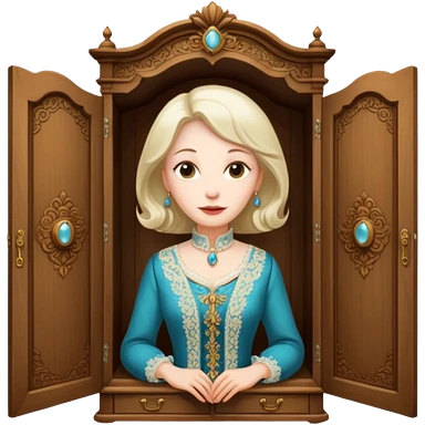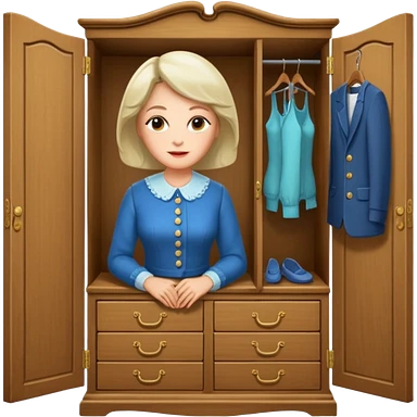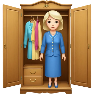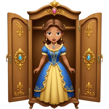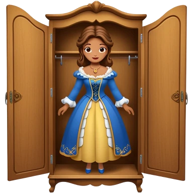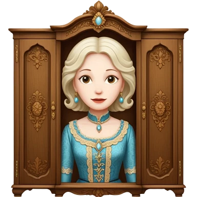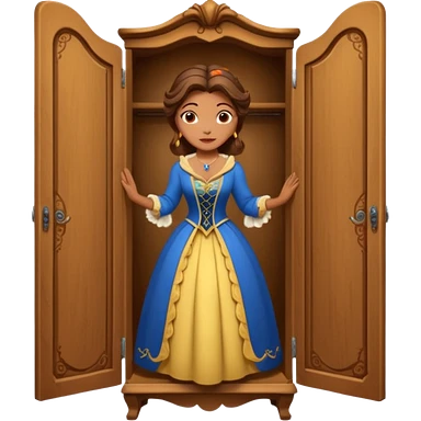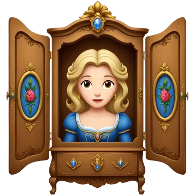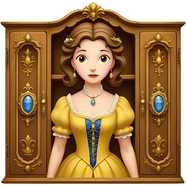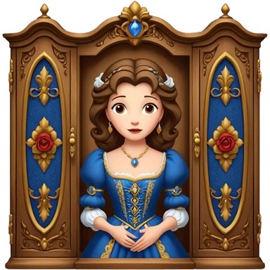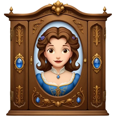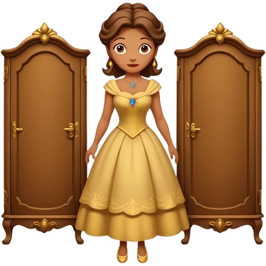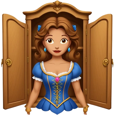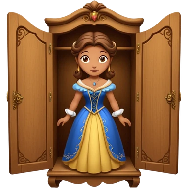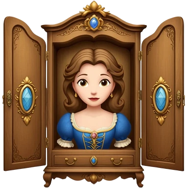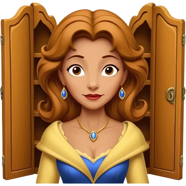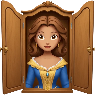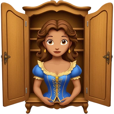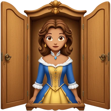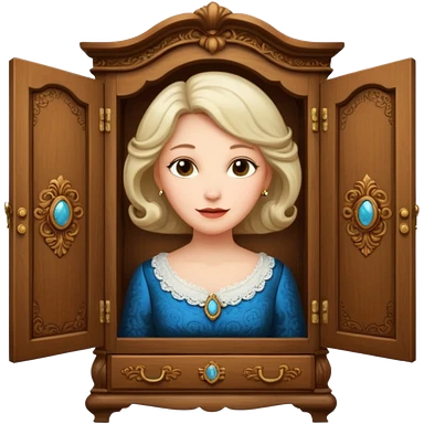 A character from the fairy tale Beauty and the Beast: the middle-aged lady (around 40 years old) who was turned into a wardrobe. She retains the wardrobe's original form, with an anthropomorphic face on the closed cabinet. emoji | AI Emoji Generator