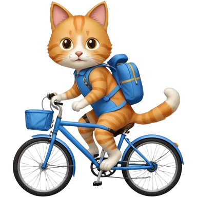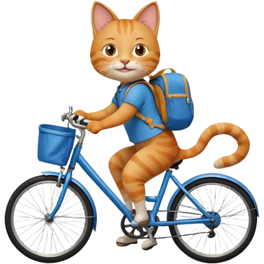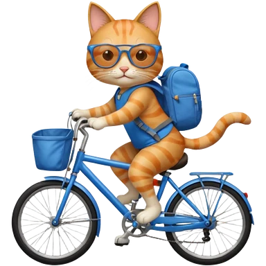 A cat is riding a bicycle and wearing a backpack. emoji