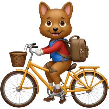 A crazy faced dog riding on a bicycle emoji