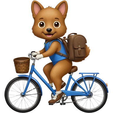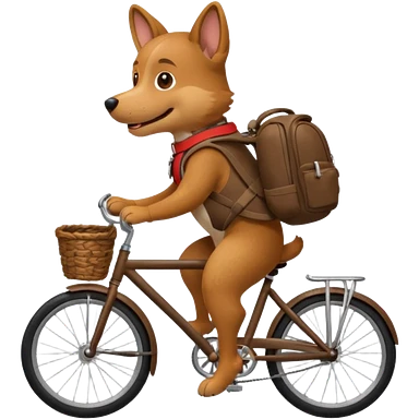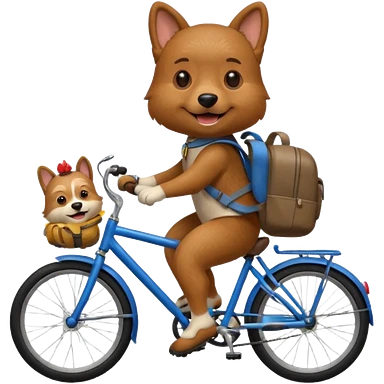 A dog is riding a bicycle and wearing a backpack. emoji