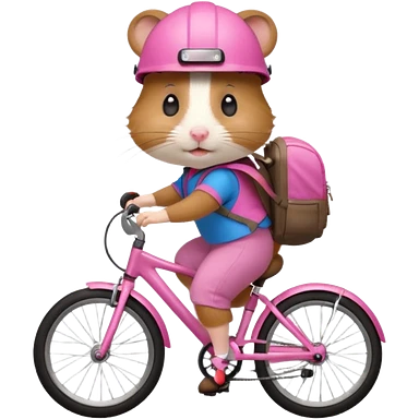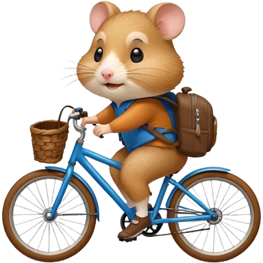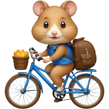 A hamster is riding a bicycle and wearing a backpack. emoji
