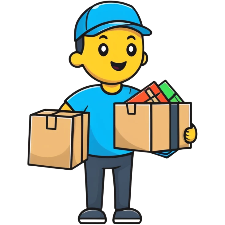 A cheerful character with delivery boxes and a clipboard, representing a reliable supplier image | AI Emoji Generator