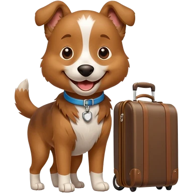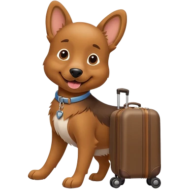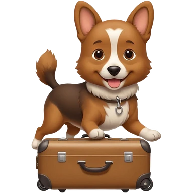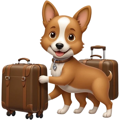 A cheerful dog pulling a small rolling suitcase behind it. emoji