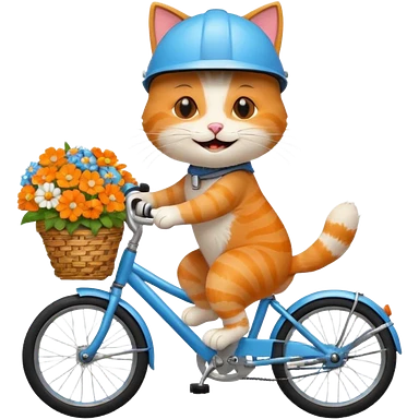 a-cheerful- cat-riding-a-blue-bicycle,-wearing-a-cute-helmet,-with-a-big-smile-and-a-basket-full-of-flowers-on-the-front.-bright,-cartoonish-style,-simple-and-fun. emoji
