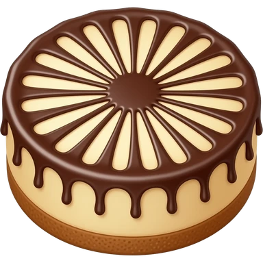 A big full circle Cheese cake and chocolate purée drizzle i emoji