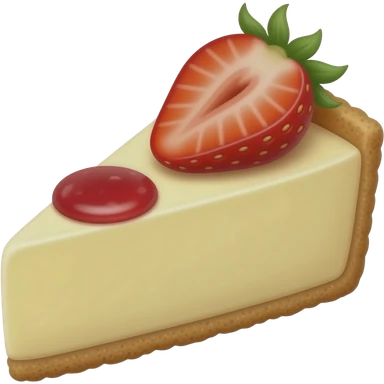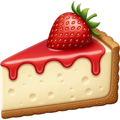 Cheese cake with gram cracker crust and a strawberry with strawberry purée emoji